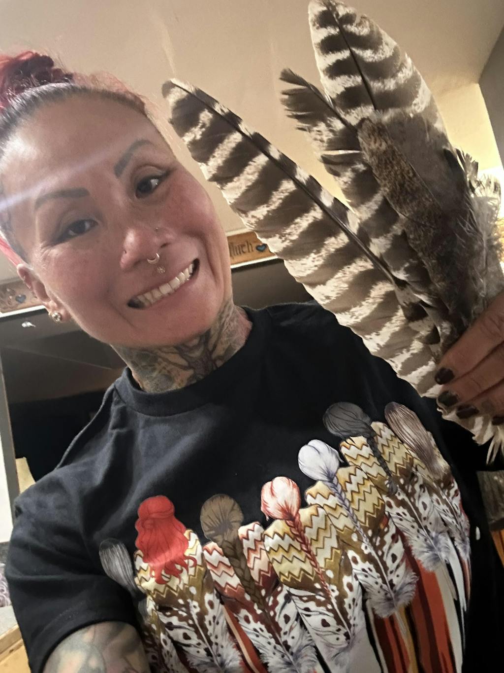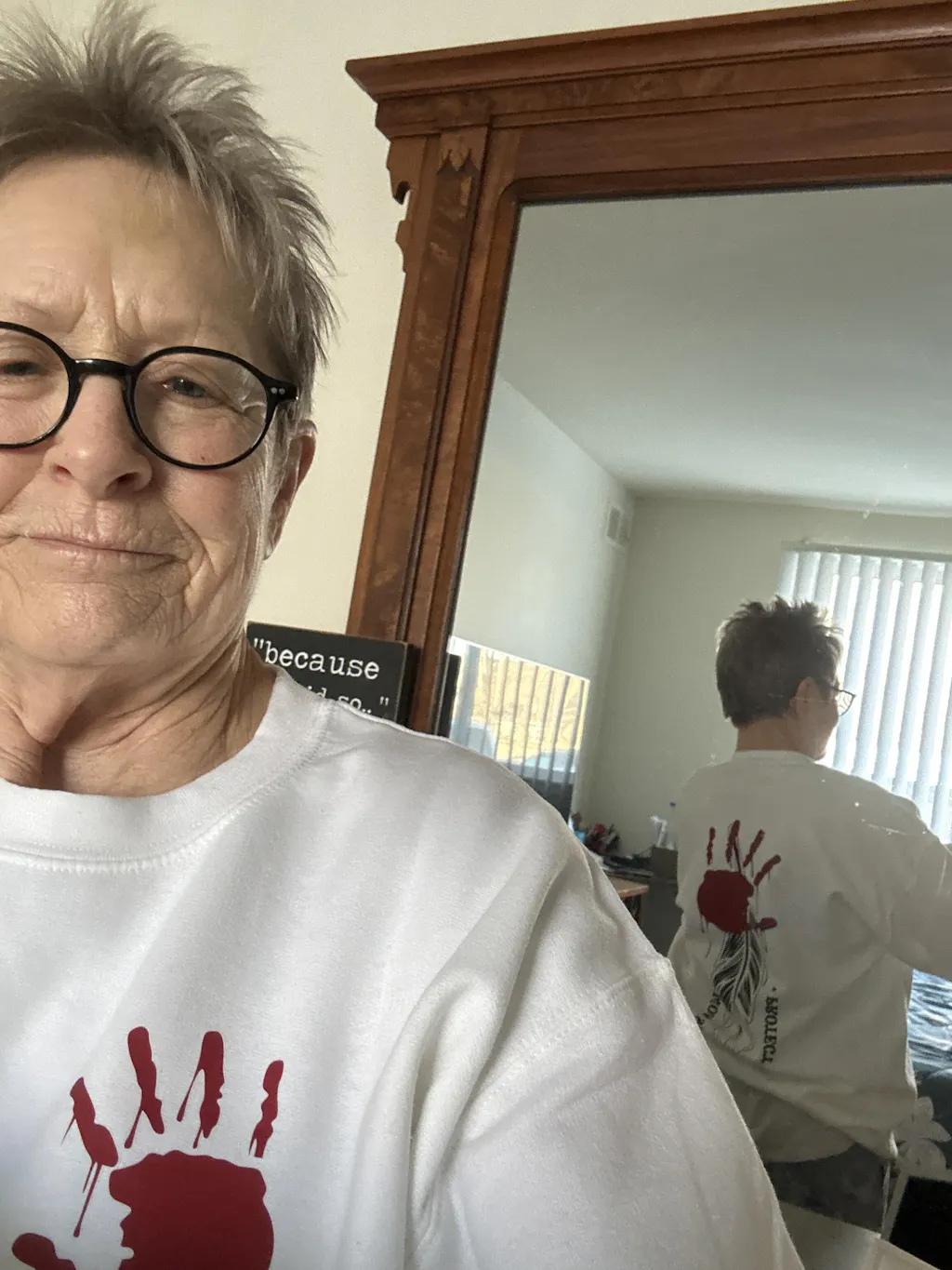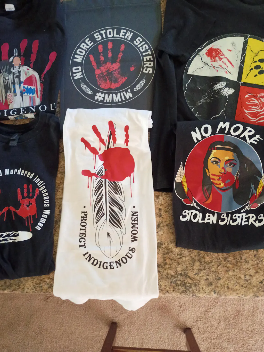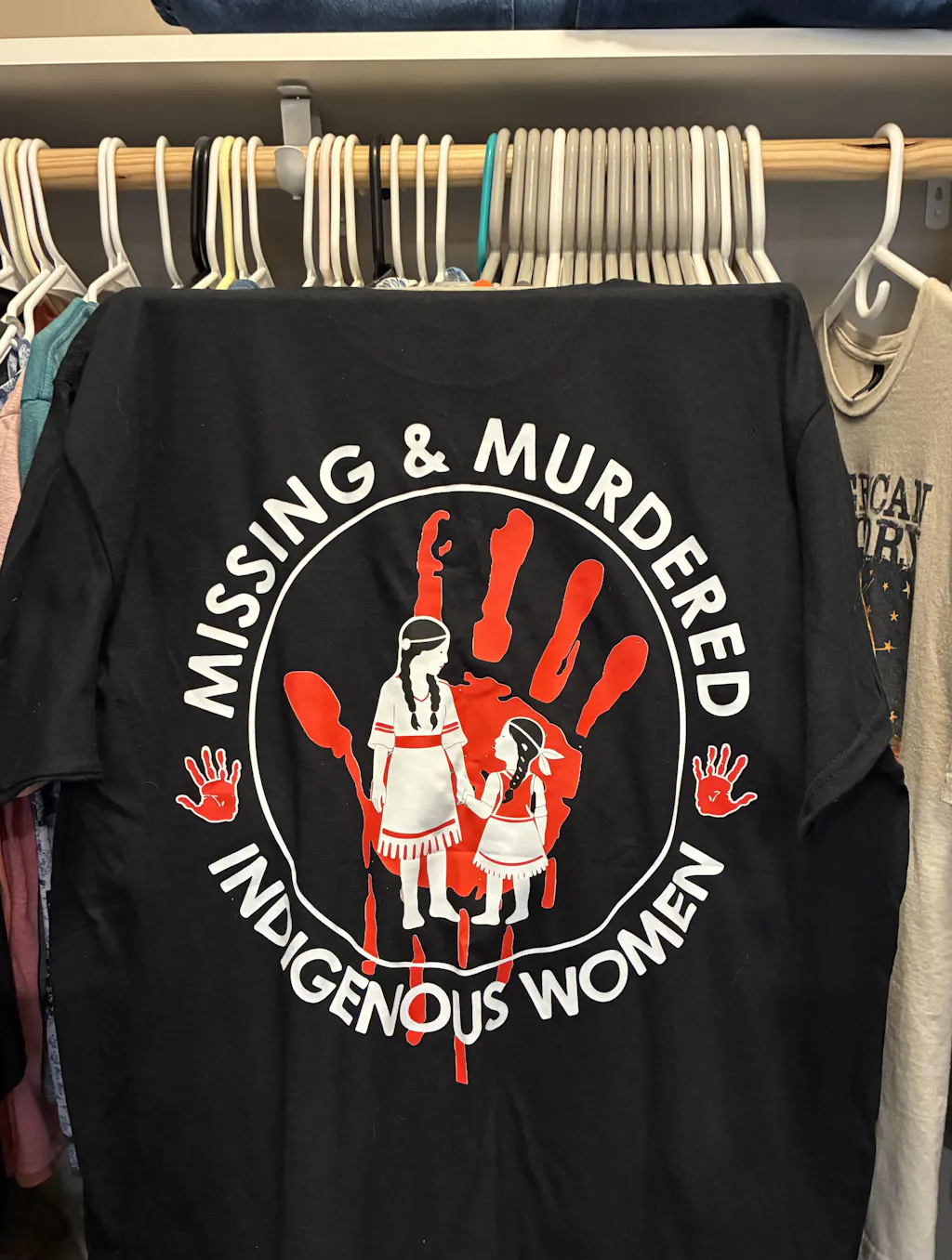 I absolutely LOVE my "NO MORE STOLEN SISTERS" shirt. I plan to wear it at as many large gatherings as possible to hopefully raise awareness and get people asking what it means.